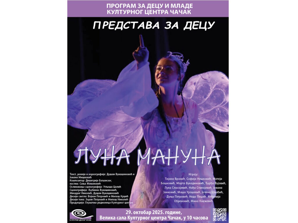 Pozorišna predstava za decu Glumačka radionica Kulturnog centra ČačakDa li će iza Mesečevog zraka Princ pronaći put i svoju prijateljicu? Čućete od Lune Manune…Moderna bajka koja pokazuje večitu borbu između […]