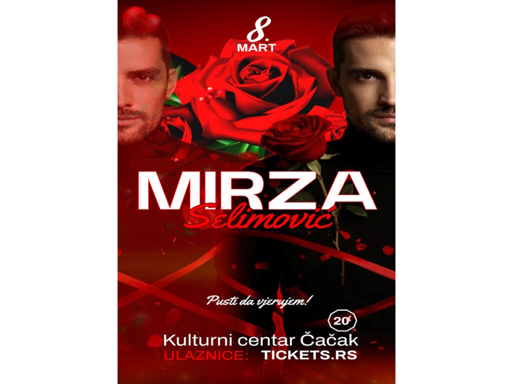 ”Пусти да вјерујем” – солистички концерт Мирзе Селимовића Организација: Музички програм Место и време: Велика сала, недеља 8. март 2026. године у 20.00 Продаја улазница преко сајта tickets.rs.
