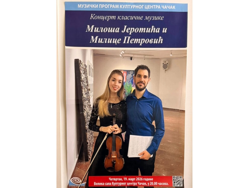 Програм концерта: Х. А. Хофман – Концертни дуо за виолину и виолончело, оп.5, бр.2 З. Кодаљ – Дуо за виолину и виолончело, оп.7 Фото: приватни архив Место и време: Велика сала, четвртак 03. […]